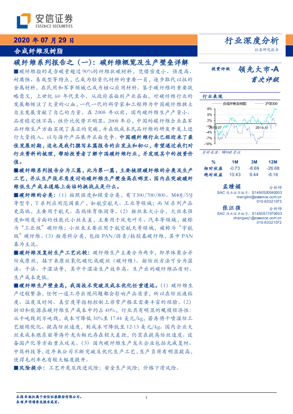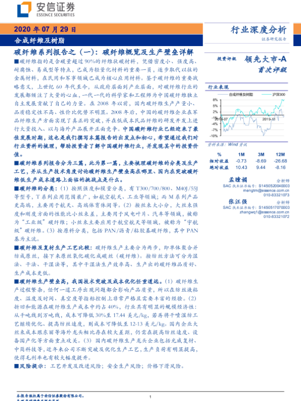 【安信证券】【20200729】20200729-安信证券-合成纤维及树脂行业深度分析:碳纤维系列报告之(一):碳纤维概览及生产壁垒详解-19页