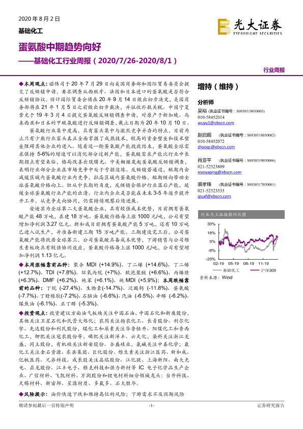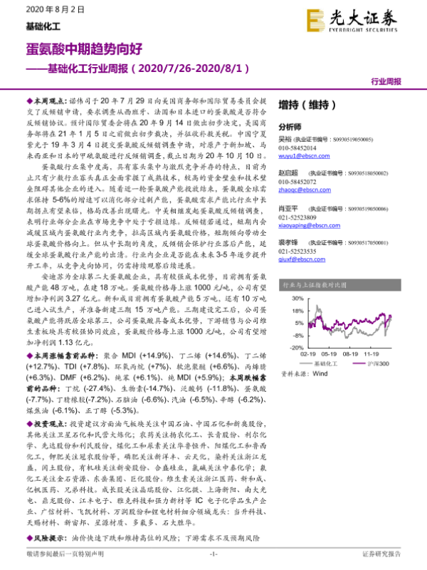 【光大证券】【20200802】基础化工行业周报:蛋氨酸中期趋势向好-24页