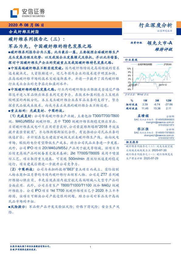 【安信证券】【20200806】合成纤维及树脂:碳纤维系列报告之(三):军品为先,中国碳纤维的特色发展之路-14页