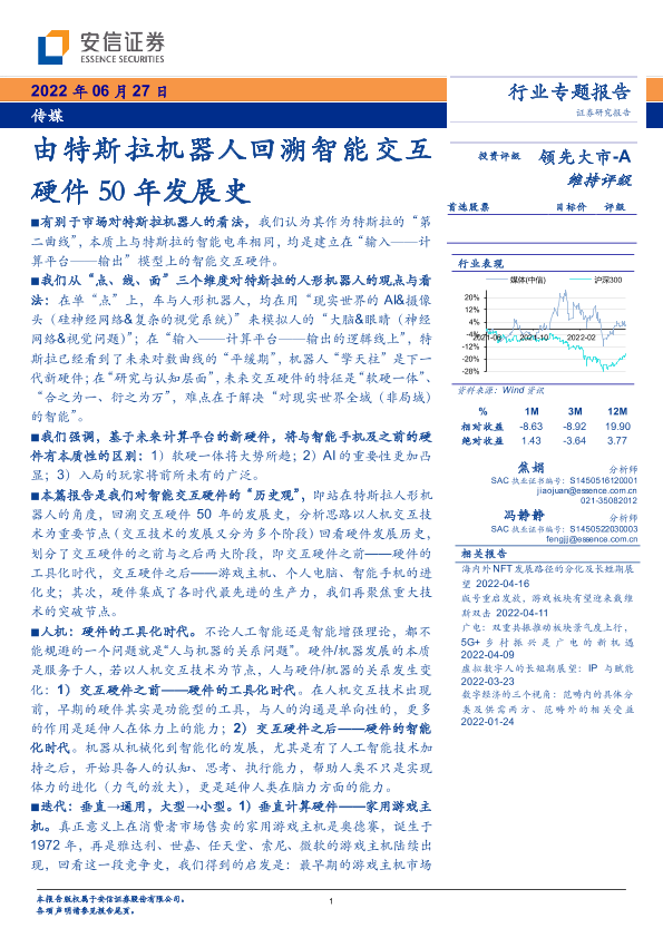 【安信证券】【20220627】传媒行业专题报告:由特斯拉机器人回溯智能交互硬件50年发展史-28页