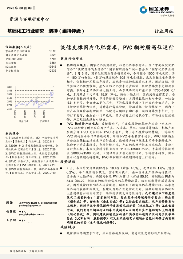 【国金证券】【20200809】基础化工行业研究:淡储支撑国内化肥需求,PVC糊树脂高位运行-17页