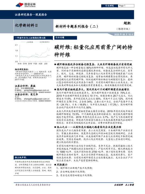 【国信证券】【20200810】新材料专题系列报告(二):碳纤维:轻量化应用前景广阔的特种纤维-28页