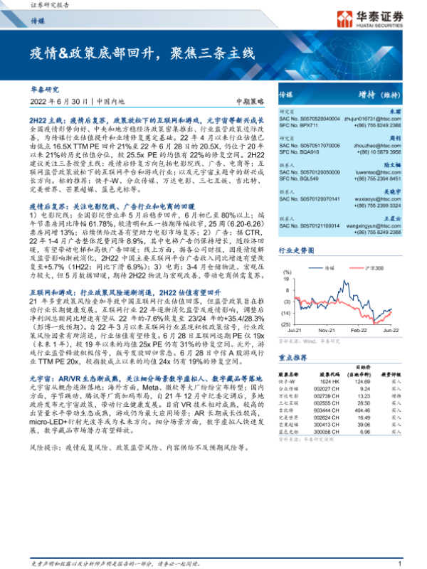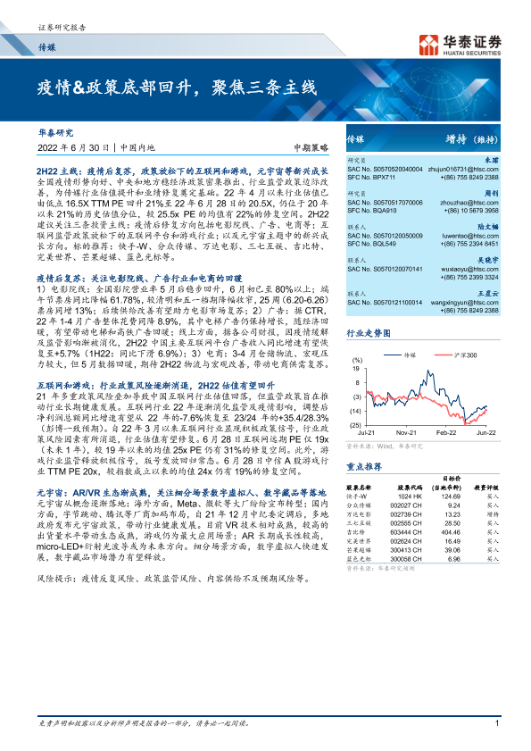 【华泰证券】【20220630】传媒行业中期策略:疫情&政策底部回升,聚焦三条主线-44页