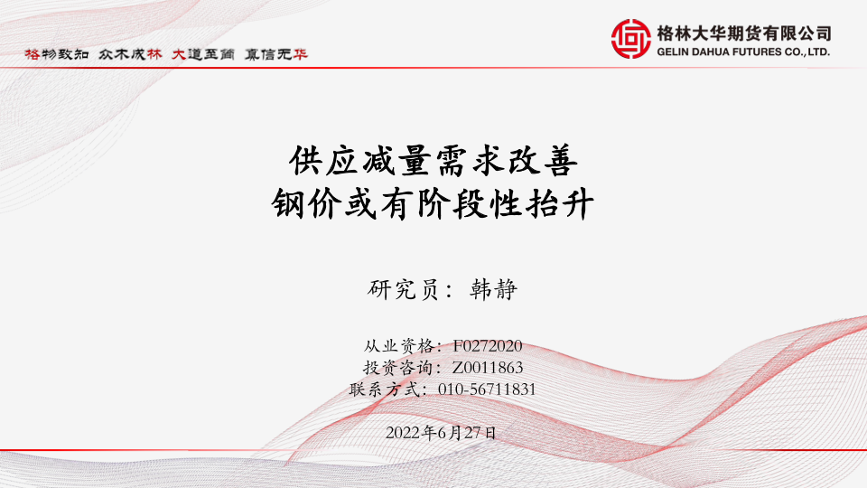 【格林大华期货】【20220627】供应减量需求改善,钢价或有阶段性抬升-25页