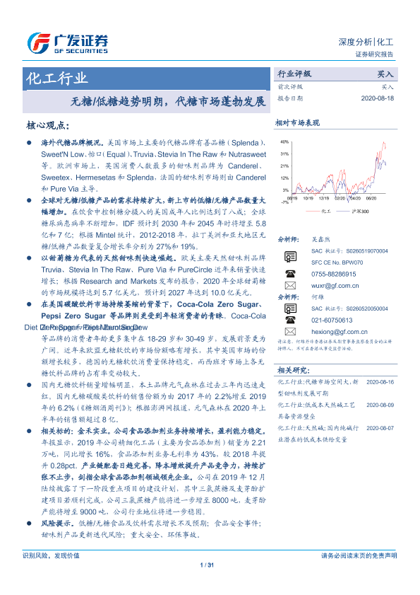 【广发证券】【20200818】化工行业:无糖 低糖趋势明朗,代糖市场蓬勃发展-31页