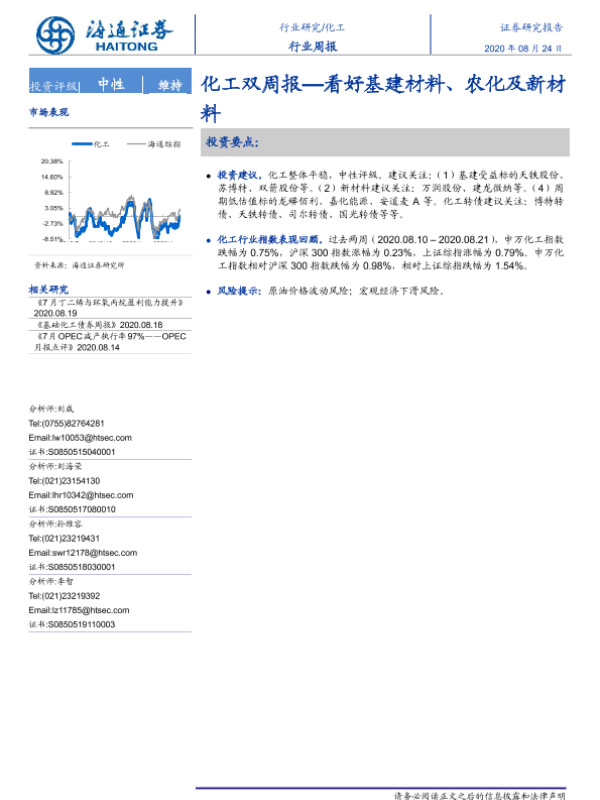 【海通证券】【20200824】化工双周报—看好基建材料、农化及新材料-13页