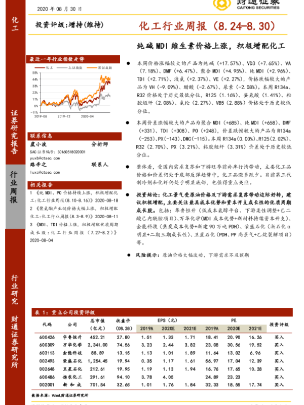 【财通证券】【20200830】20200830-财通证券-化工行业周报:纯碱MDI维生素价格上涨,积极增配化工-6页