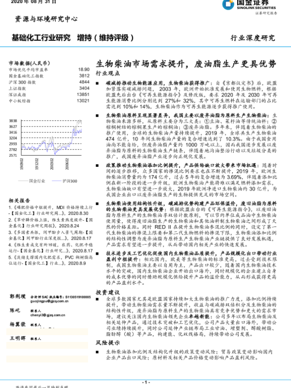 【国金证券】【20200831】基础化工行业研究:生物柴油市场需求提升,废油脂生产更具优势-22页