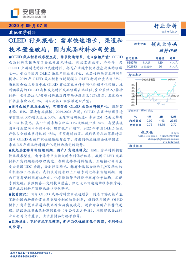 【安信证券】【20200907】20200907-安信证券-其他化学制品OLED行业报告:需求快速增长,渠道和技术壁垒破局,国内成品材料公司受益-16页