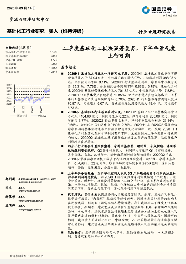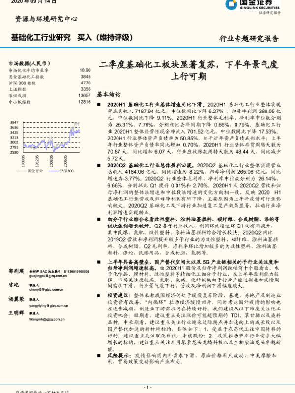 【国金证券】【20200914】20200914-国金证券-基础化工行业研究:二季度基础化工板块显著复苏,下半年景气度上行可期-42页