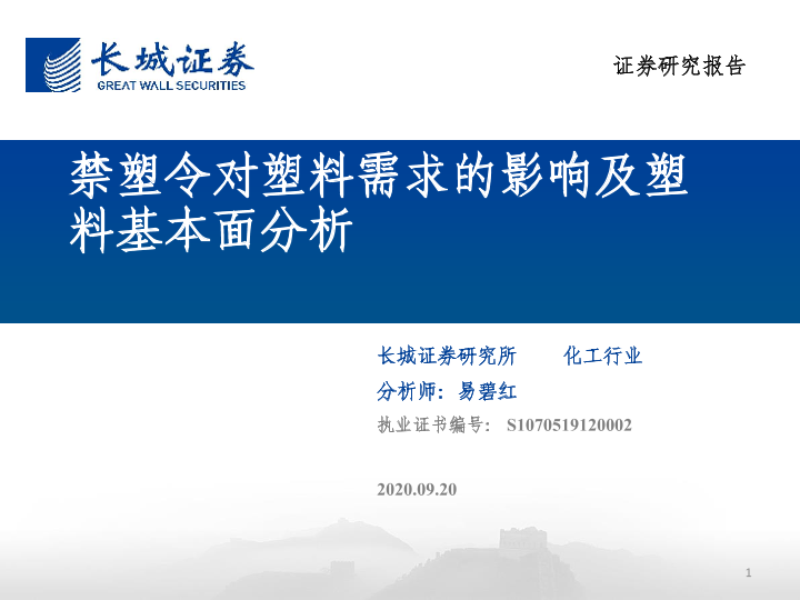 【长城证券】【20200920】禁塑令对塑料需求的影响及塑料基本面分析-29页