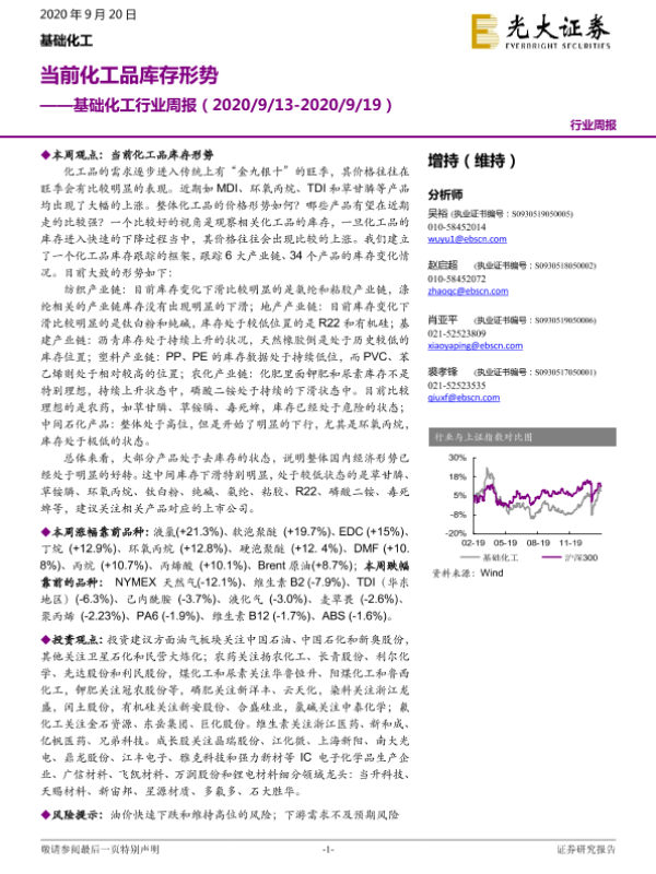 【光大证券】【20200920】基础化工行业周报:当前化工品库存形势-28页