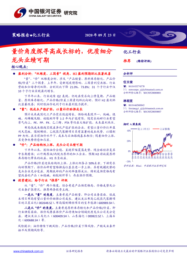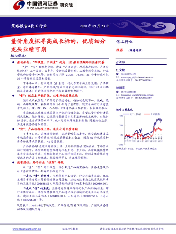 【银河证券】【20200923】20200923-中国银河-化工行业策略报告:量价角度探寻高成长标的,优质细分龙头业绩可期-24页