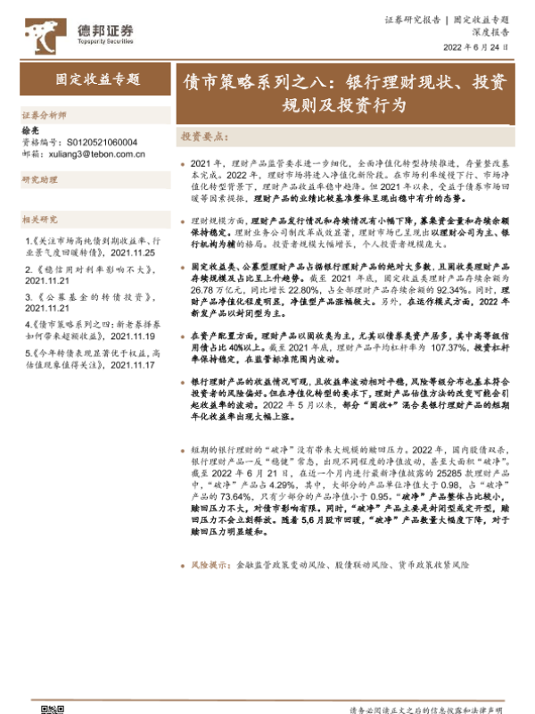 【德邦证券】【20220624】债市策略系列之八:银行理财现状、投资规则及投资行为-29页