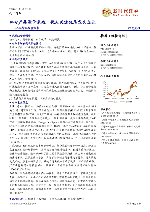 【新时代证券】【20200921】20200921-新时代证券-化工行业投资周报:部分产品涨价来袭,优先关注优质龙头企业-17页