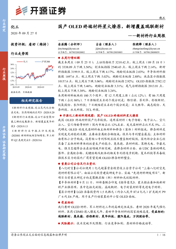 【开源证券】【20200927】20200927-开源证券-新材料行业周报:国产OLED终端材料星火燎原,新增覆盖瑞联新材-16页