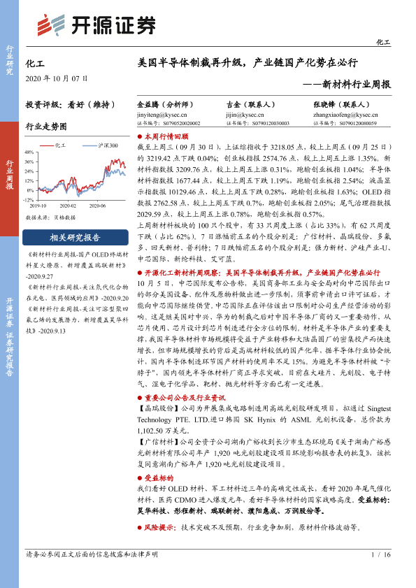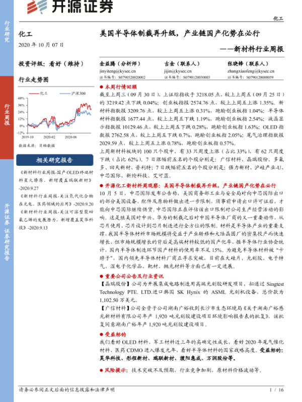 【开源证券】【20201007】新材料行业周报:美国半导体制裁再升级,产业链国产化势在必行-16页