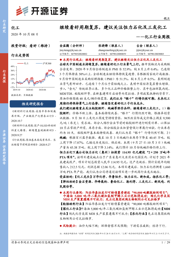 【开源证券】【20201008】化工行业周报:继续看好周期复苏,建议关注恒力石化及三友化工-29页