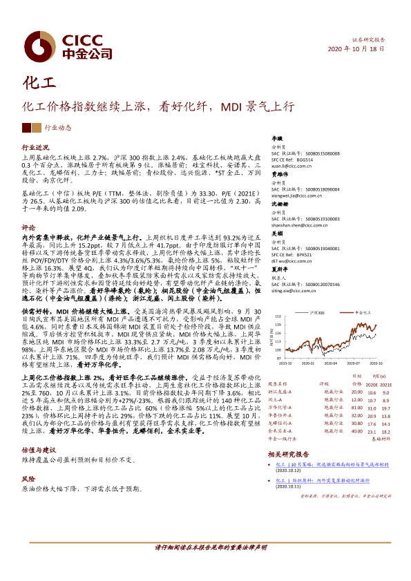 【中金公司】【20201018】化工:化工价格指数继续上涨,看好化纤,MDI景气上行-17页