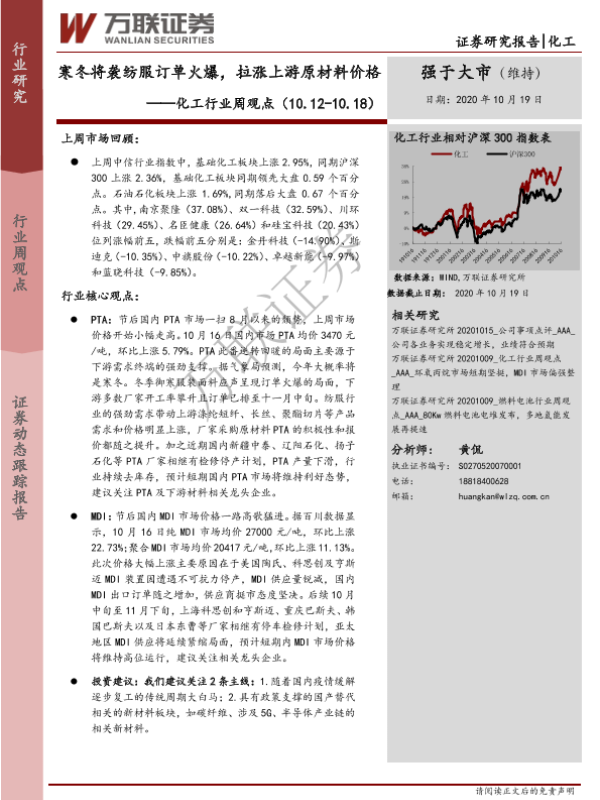 【万联证券】【20201019】20201019-万联证券-化工行业周观点:寒冬将袭纺服订单火爆,拉涨上游原材料价格-17页