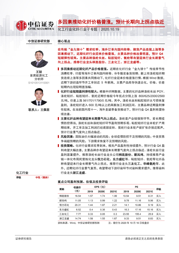 【中信证券】【20201019】多因素推动化纤价格普涨,预计长期向上拐点临近-12页
