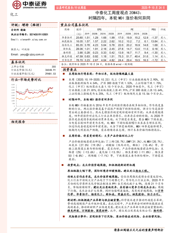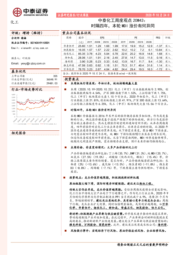 【中泰证券】【20201024】中泰化工周度观点20W43:时隔四年,本轮MDI涨价有何异同-30页