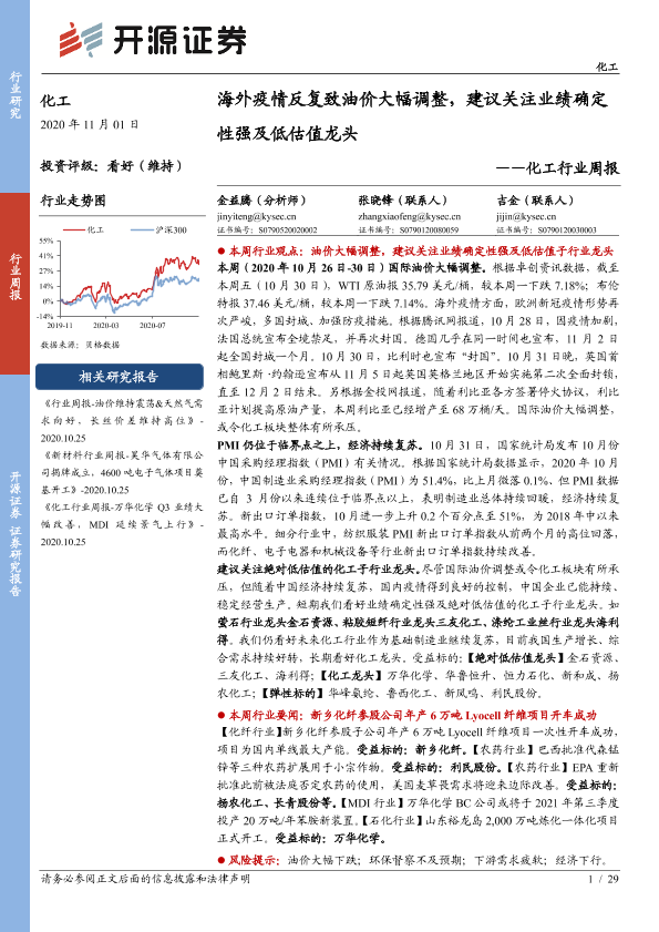 【开源证券】【20201101】化工行业周报:海外疫情反复致油价大幅调整,建议关注业绩确定性强及低估值龙头-29页