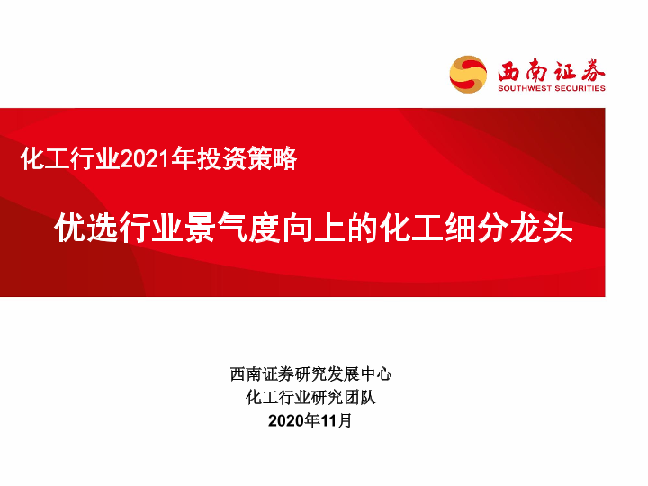 【西南证券】【202011】化工行业2021年投资策略:优选行业景气度向上的化工细分龙头-52页