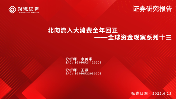 【财通证券】【20220625】全球资金观察系列十三:北向流入大消费全年回正-31页