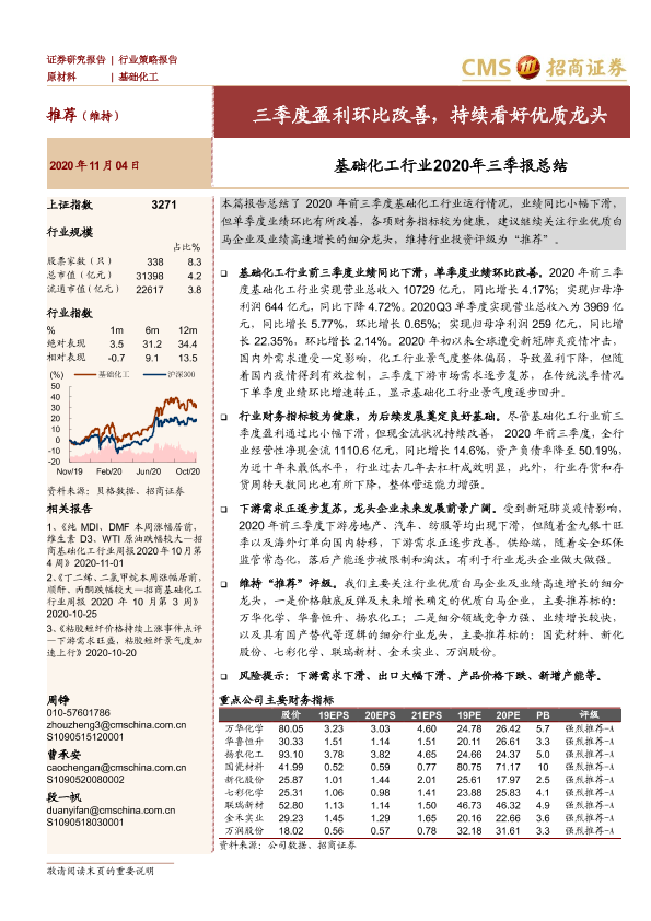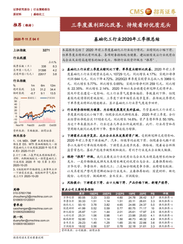 【海通证券】【20201104】基础化工行业2020年三季报总结:三季度盈利环比改善,持续看好优质龙头-25页