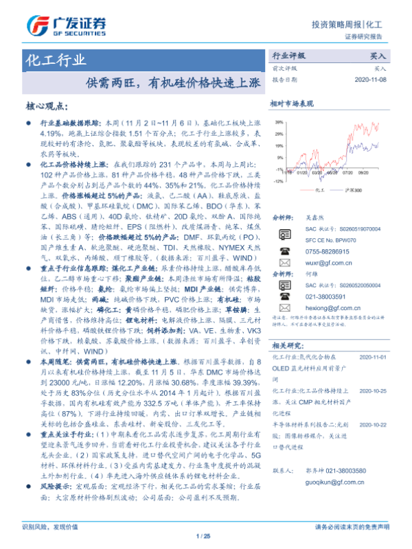 【广发证券】【20201108】20201108-广发证券-化工行业投资策略周报:供需两旺,有机硅价格快速上涨-25页