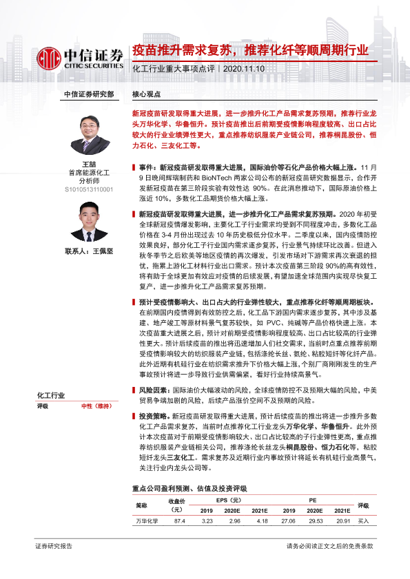 【中信证券】【20201110】20201110-中信证券-化工行业重大事项点评:疫苗推升需求复苏,推荐化纤等顺周期行业-3页