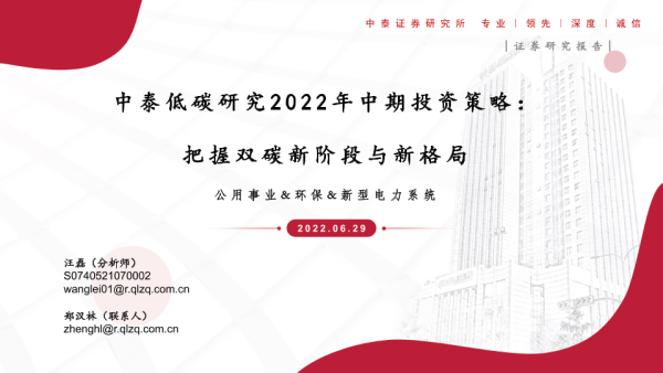 【中泰证券】【20220629】公用事业&环保&新型电力行业中泰低碳研究2022年中期投资策略:把握双碳新阶段与新格局-72页
