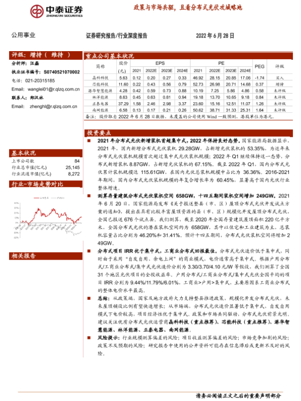 【中泰证券】【20220628】公用事业行业:政策与市场共驱,且看分布式光伏攻城略地-35页