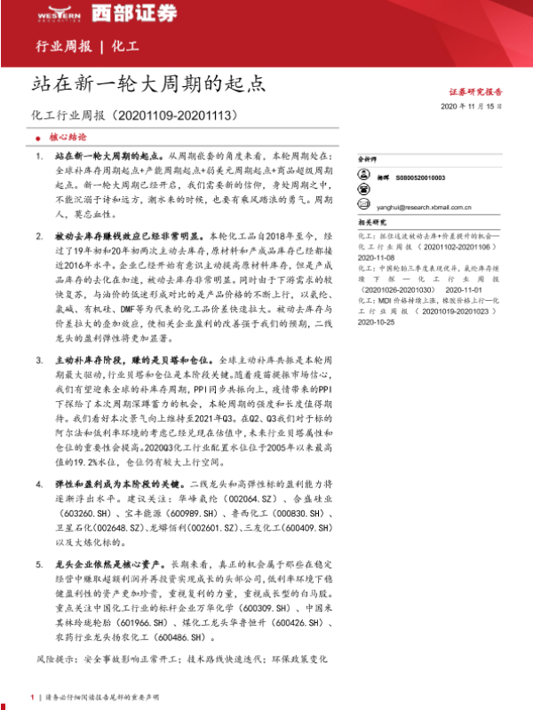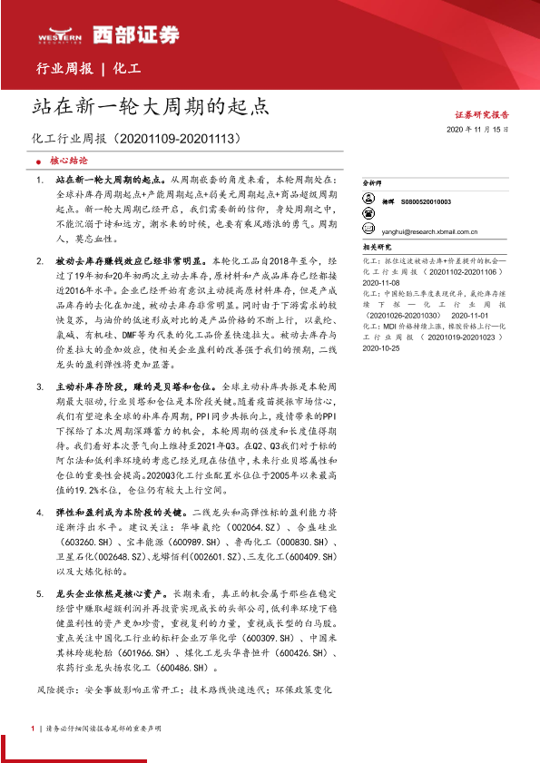 【西部证券】【20201115】化工行业周报:站在新一轮大周期的起点-18页