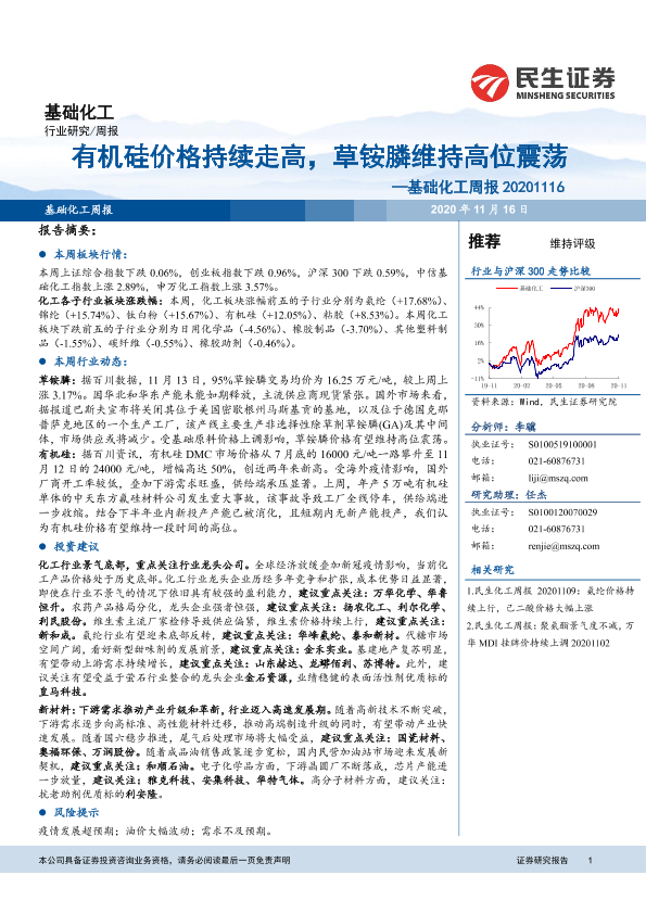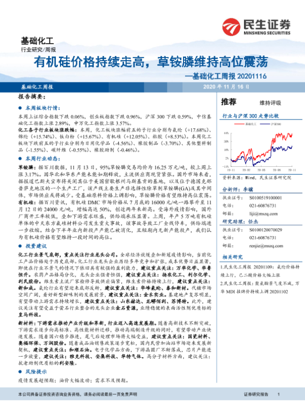 【民生证券】【20201116】基础化工周报:有机硅价格持续走高,草铵膦维持高位震荡-19页