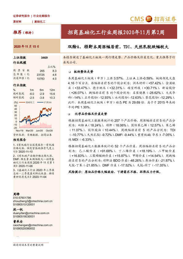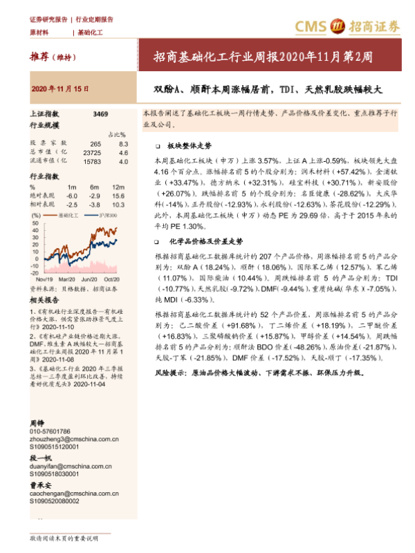 【海通证券】【20201115】招商基础化工行业周报2020年11月第2周:双酚A、顺酐本周涨幅居前,TDI、天然乳胶跌幅较大-25页