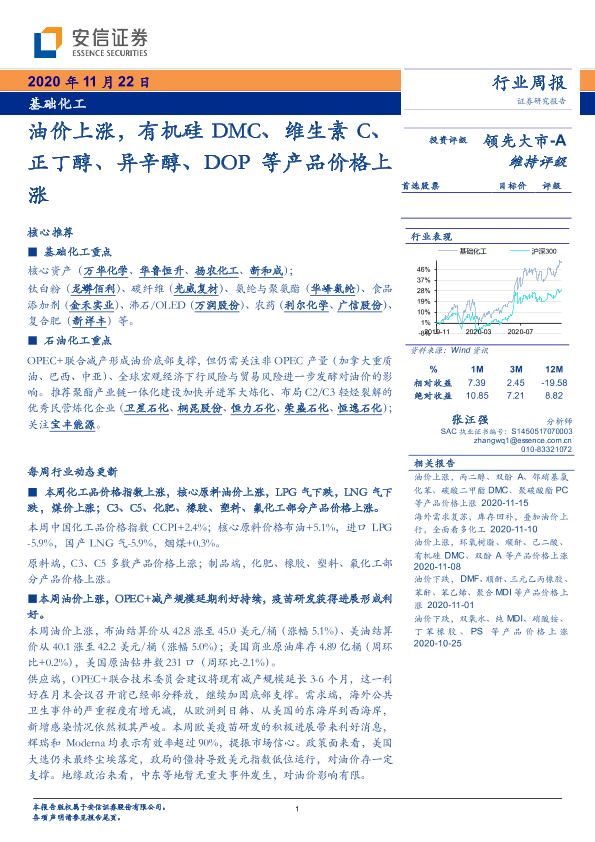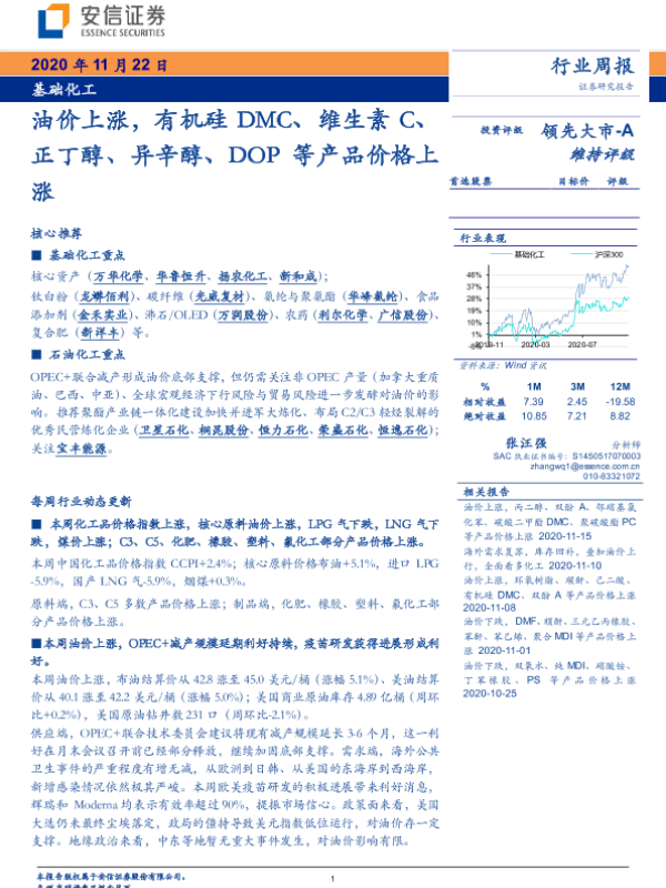 【安信证券】【20201122】基础化工行业周报:油价上涨,有机硅DMC、维生素C、正丁醇、异辛醇、DOP等产品价格上涨-4页