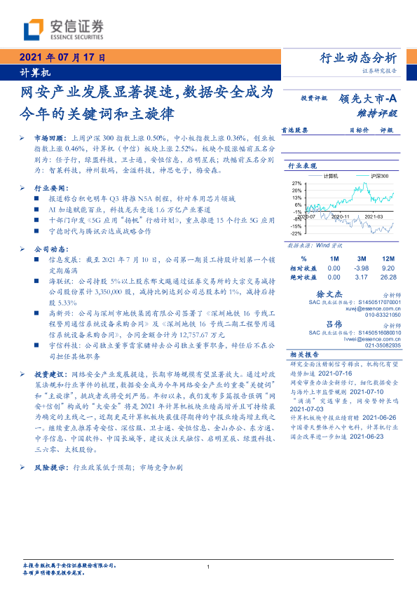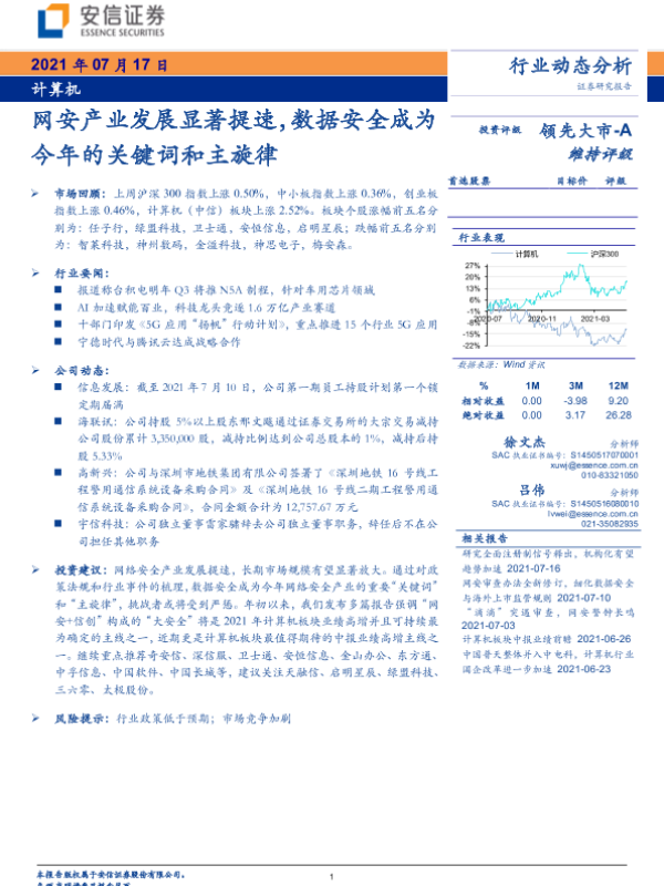【安信证券】【20210717】计算机行业:网安产业发展显著提速,数据安全成为今年的关键词和主旋律-21页