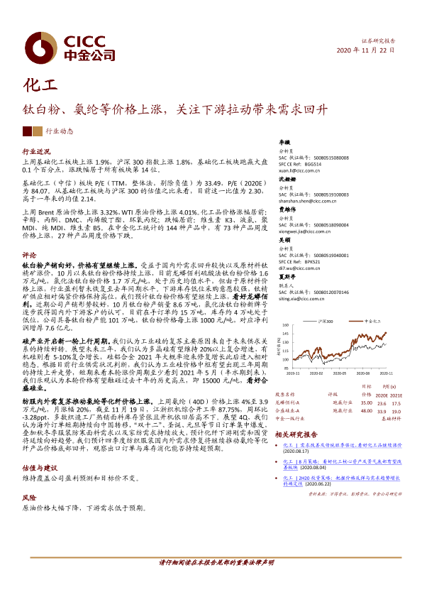 【中金公司】【20201122】20201122-中金公司-化工:钛白粉、氨纶等价格上涨,关注下游拉动带来需求回升-16页