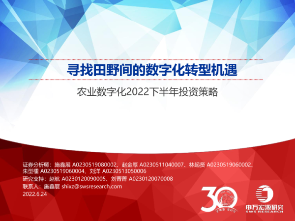 【申万宏源】【20220624】农业数字化2022下半年投资策略:寻找田野间的数字化转型机遇-27页