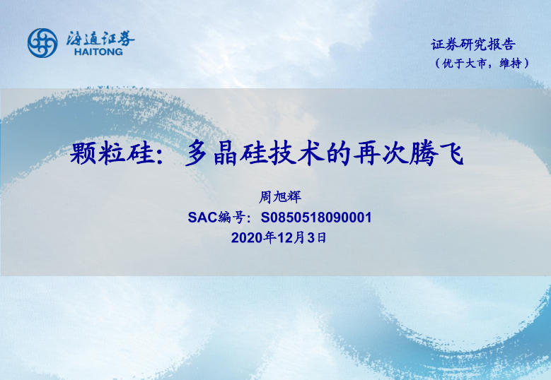 【海通证券】【20201203】颗粒硅:多晶硅技术的再次腾飞-16页