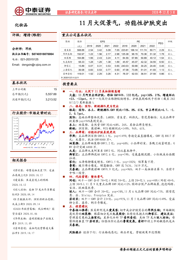 【中泰证券】【20201203】20201203-中泰证券-化妆品行业点评:11月大促景气,功能性护肤突出-8页