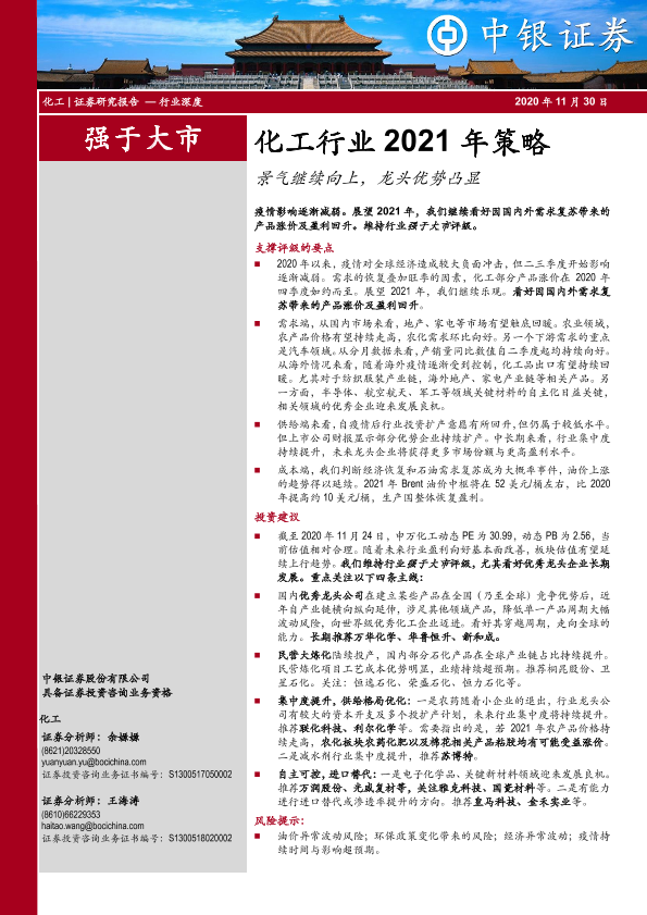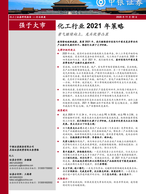 【中银证券】【20201130】化工行业2021年策略:景气继续向上,龙头优势凸显-53页
