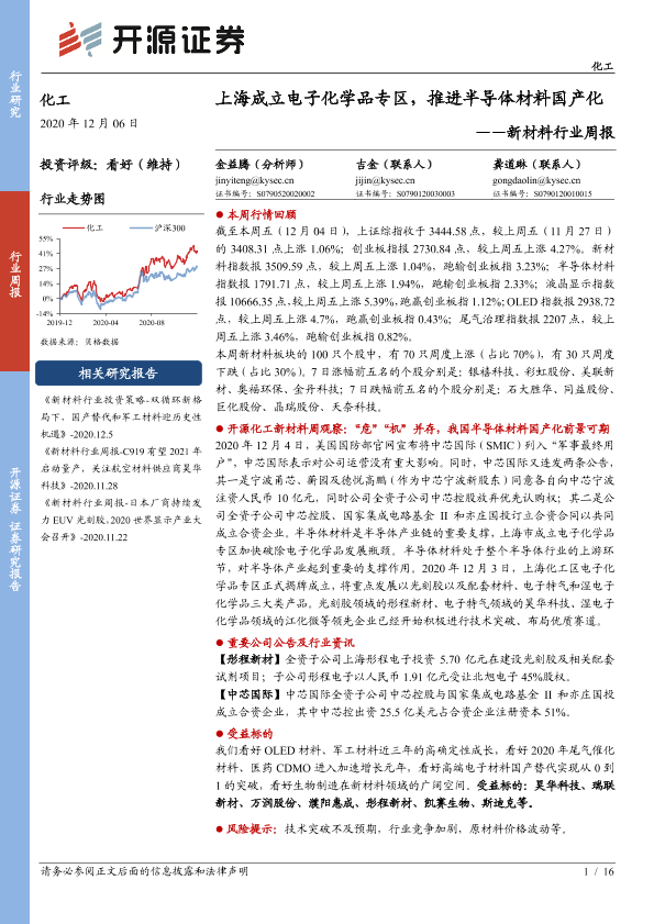 【开源证券】【20201206】新材料行业周报:上海成立电子化学品专区,推进半导体材料国产化-16页