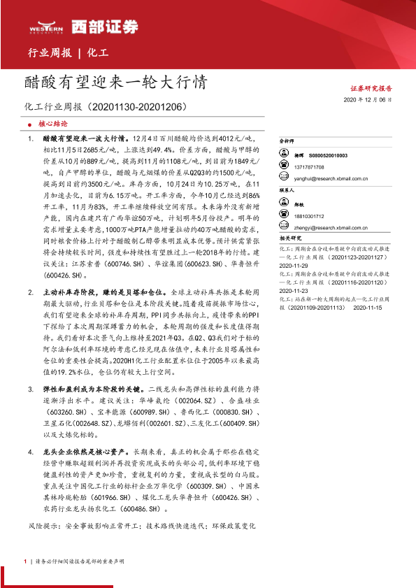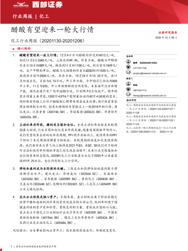 【西部证券】【20201206】化工行业周报:醋酸有望迎来一轮大行情-22页