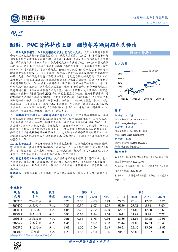 【国盛证券】【20201213】20201213-国盛证券-化工行业周报:醋酸、PVC价格持续上涨,继续推荐顺周期龙头标的-12页