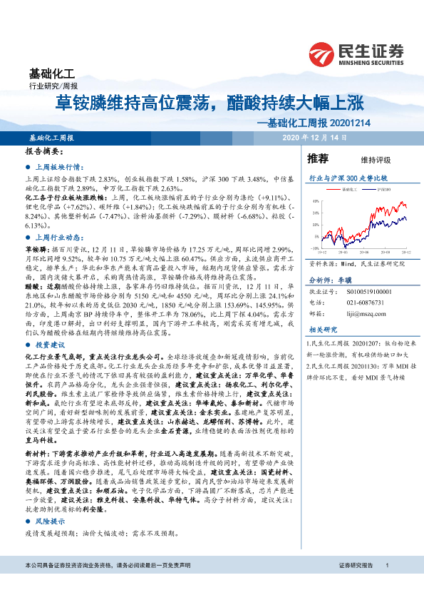 【民生证券】【20201214】基础化工周报:草铵膦维持高位震荡,醋酸持续大幅上涨-18页