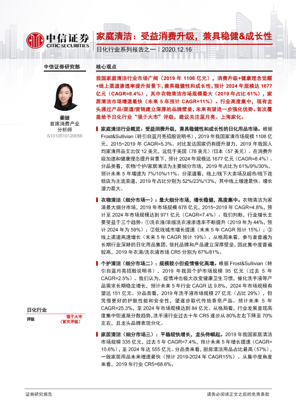 【中信证券】【20201216】日化行业系列报告之一:家庭清洁:受益消费升级,兼具稳健&成长性-42页
