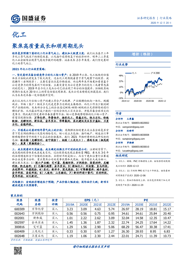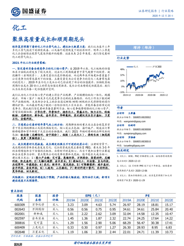 化工行业 投资策略 经济复苏 顺周期龙头 高质量成长